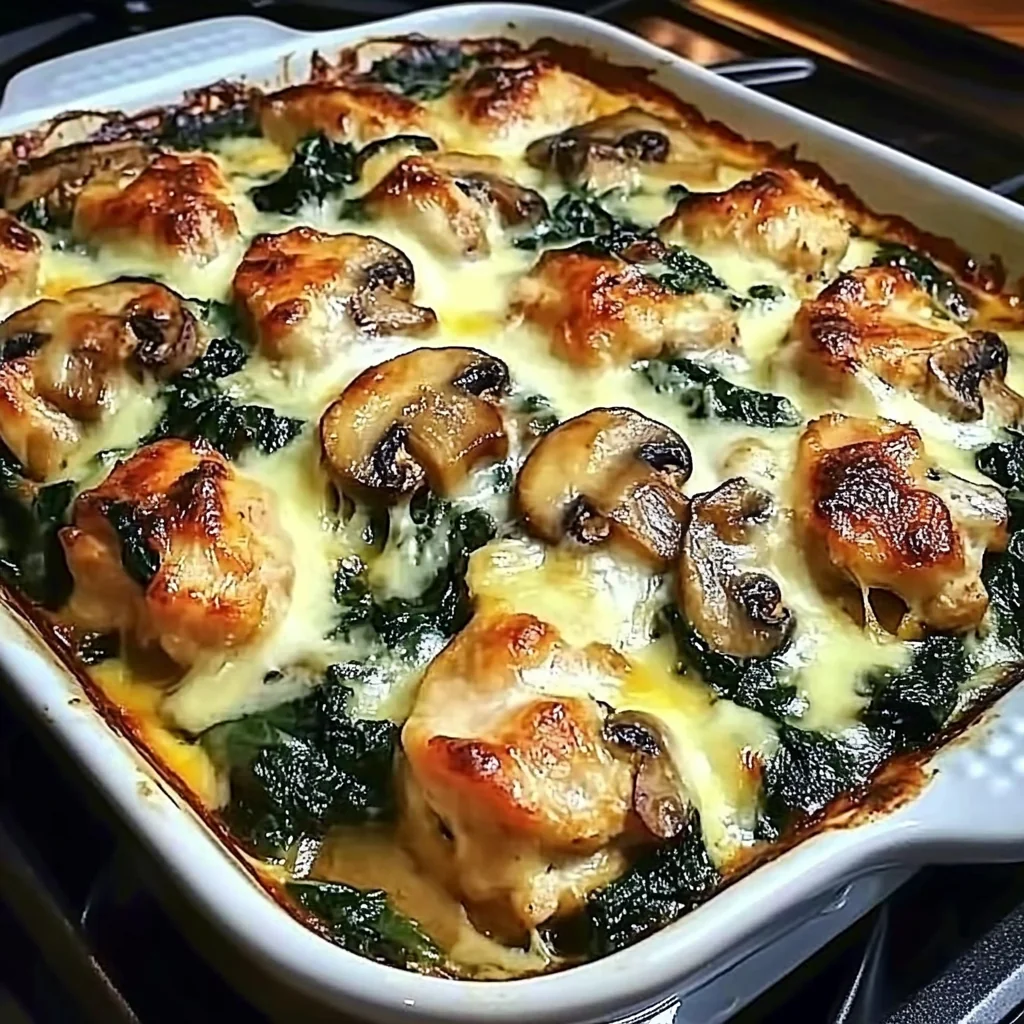 Delicious Chicken Spinach and Mushroom Low Carb Oven Dish